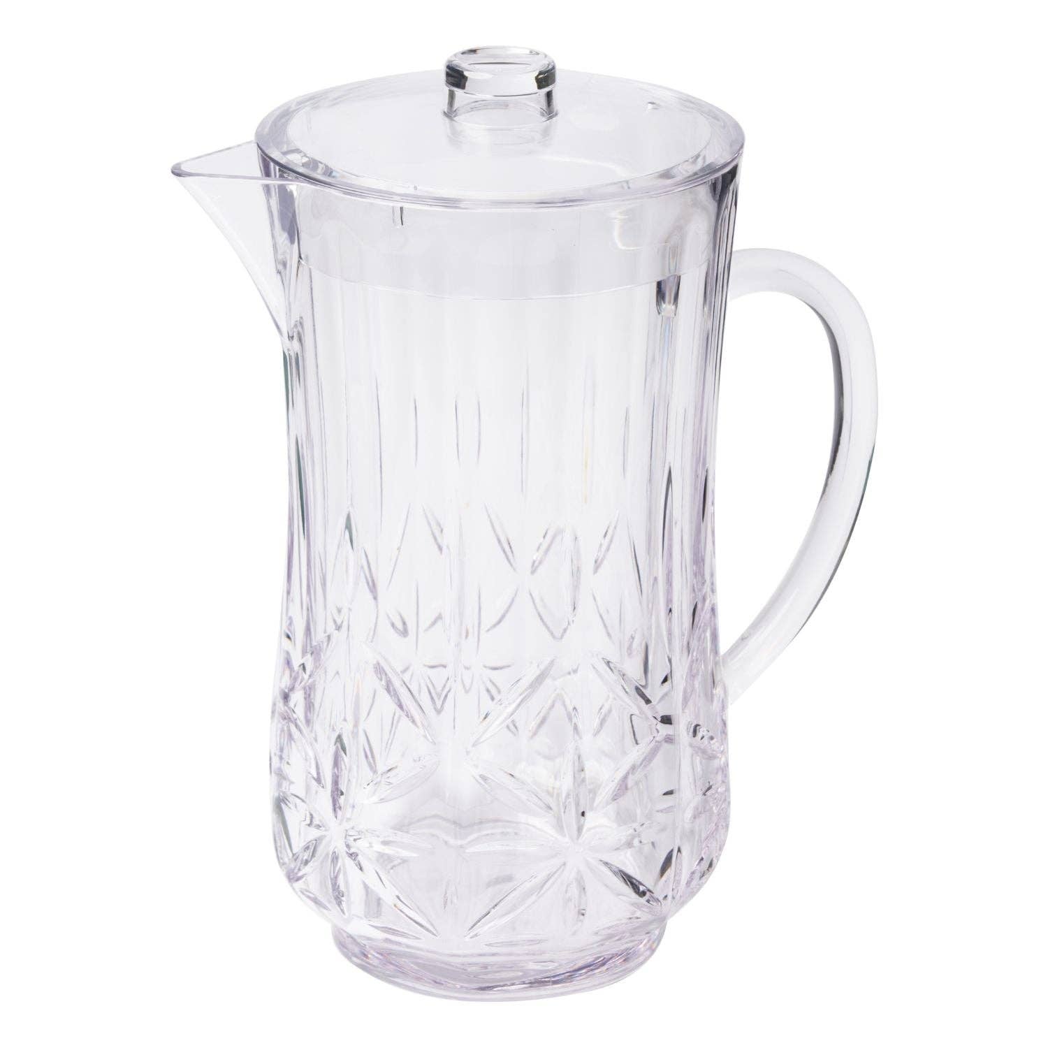Why is this pitcher better than glass? It does not sweat, so you won't have to deal with drips on your table or a pool of water at the base. This sophisticated, crystal-like pitcher will enhance any setting, adding a touch of elegance and practicality to your gatherings. Enjoy the beauty of fine glassware with the durability and convenience of high-quality plastic!
