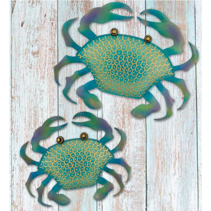 A set of 2 Seablue crabs with metallic paint accents that bring the beauty of the ocean to your home.