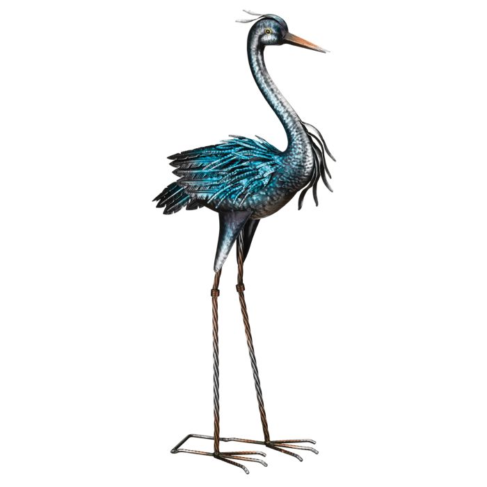 This Heron Decor features eye-catching iridescent colors, a handcrafted sturdy metal body construction with detailed feathers.
