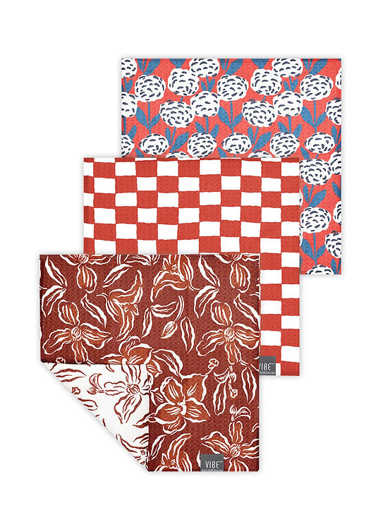 MuKitchen Vibe Recycled Cloth Set/3 Red Floral