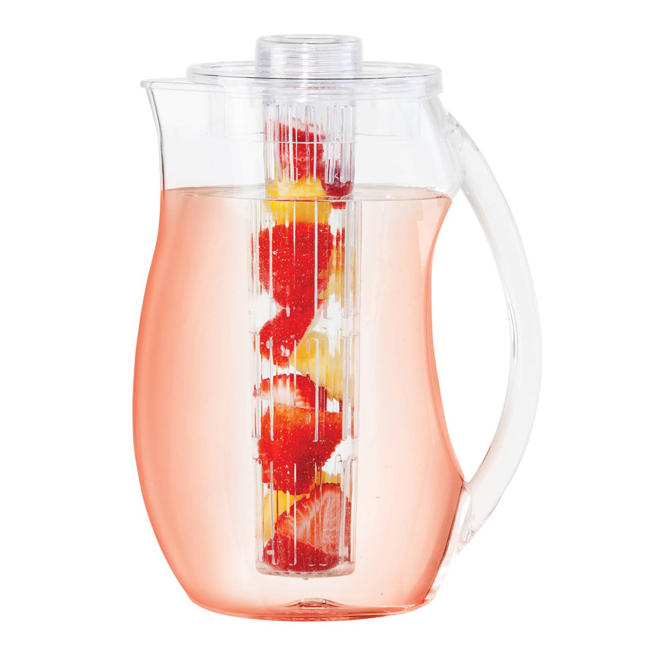 Easily infuse water, tea, or other beverages with OGGI's Acrylic Infusion Pitcher. Put fruits, herbs, or vegetables into the removable infusion tube and screw it into the lid. The tube suspends in the middle of the pitcher to release juices and infuse your beverage. The clear pitcher allows you to see contents and makes a colorful addition to your table. Use a fruit infuser to elevate any meal. It is a healthy way to add natural flavors and do so with ease. Hand washing is recommended.