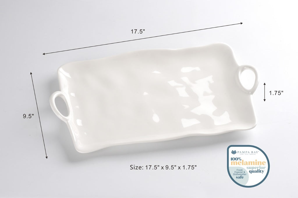 The Pampa Bay Ivy Large Platter Melamine is expertly designed for versatile serving in casual settings. Ideal for presenting main courses, grilled vegetables, or desserts, this sleek white-toned platter combines superior quality melamine with durability. Suitable for both indoor and outdoor use, it is food safe, freezer safe, and dishwasher safe, ensuring easy care and lasting performance. Its elegant yet practical design makes it a reliable choice for effortless entertaining.