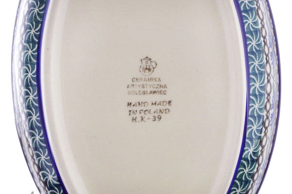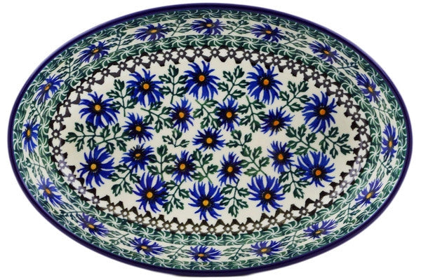 Polmedia Polish Pottery Oval Baker 9" Blue Chicory