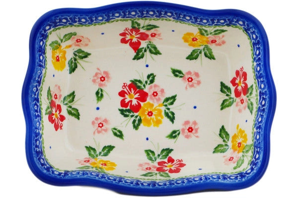 Polmedia Polish Pottery Rectangular Baker 8" Hibiscus Splendor