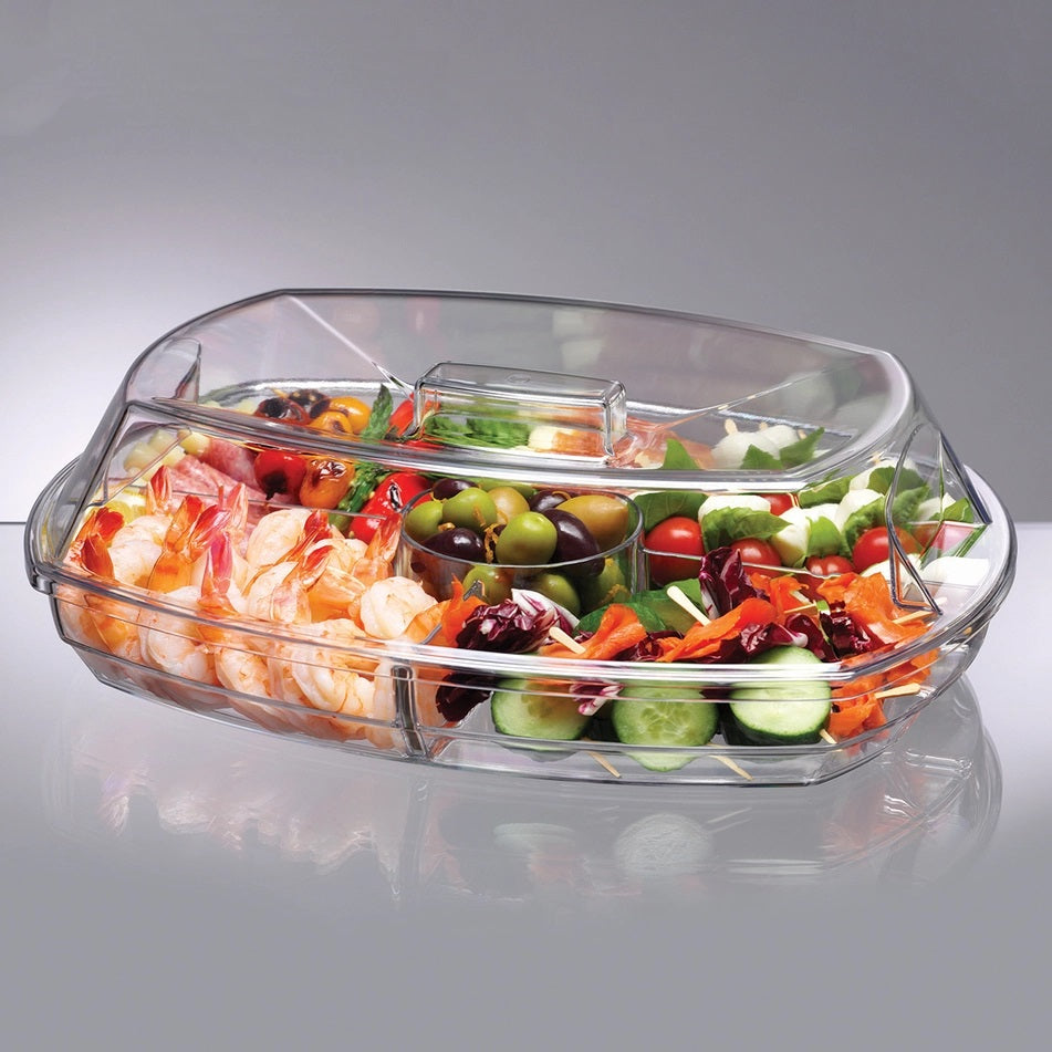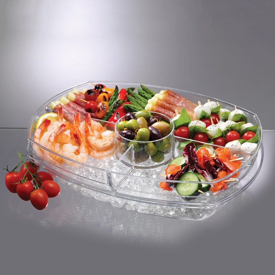 Flip the lid and fill with ice! Appetizer trays fit over ice to keep appetizers chilled and fresh. Includes lid & tray.